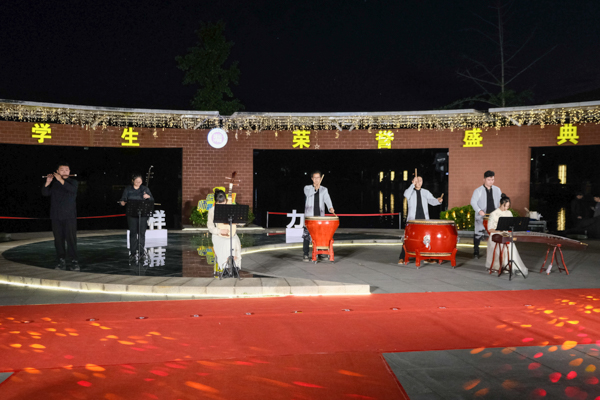 盛典上,经济管理学院田媛、生命科学学院李泽宁、艺术学院张华欣、信息工程学院彭蔚四位同学共同朗诵了《师院追光人》;音乐学院刘沅杰同学讲述了他和团队的“国挑”故事;医学院/护理学院赵龙、工学院刘谋德、教师教育学院张静三位退役学生分享了他们在部队中、回归校园后的经历和感悟;音乐学院的同学们精彩演绎了民乐演奏《领航》,歌曲《少年》、《凤凰花开的路口》以及打击乐《象王行》等节目。
