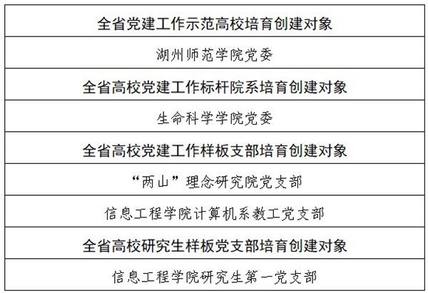 近日,省委教育工委公布了第四批全省高校党建项目培育创建对象名单,我校入选“党建工作示范高校”培育创建单位,1个二级学院党委、3个基层党支部分别入选党建工作标杆院系、样板支部培育创建单位。